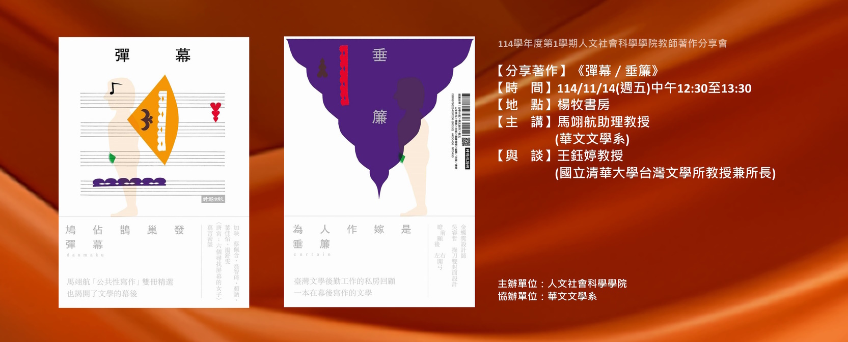 114學年度第1學期人文社會科學學院教師著作分享會《彈幕/垂簾》